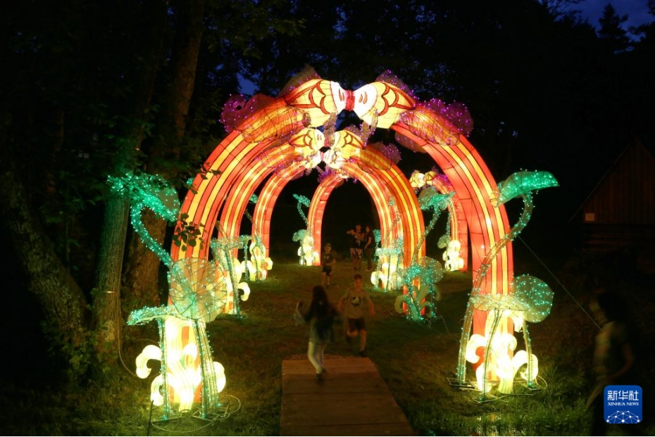 这是2019年6月23日在罗马尼亚锡比乌市阿斯特拉露天博物馆拍摄的自贡彩灯展。新华社记者 陈进 摄
