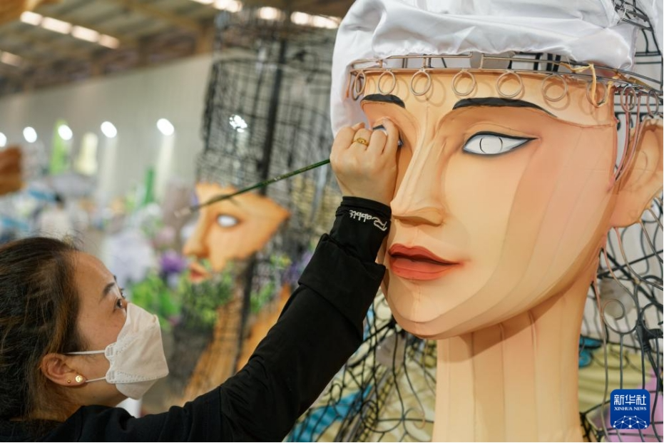 2025年6月4日,工作人员在四川省自贡市灯彩集团厂房内为彩灯手绘眼睛。新华社记者 张笑宇 摄