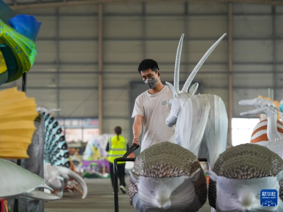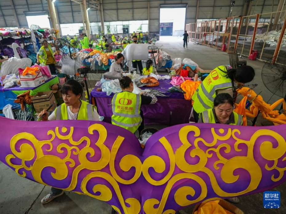 2025年6月4日,工作人员在四川省自贡市灯彩集团厂房内打包制作好的彩灯,准备发往海外。新华社记者 张笑宇 摄