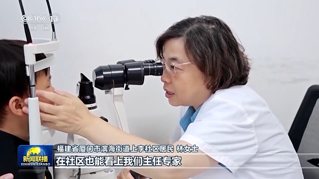 福建省厦门市滨海街道上李社区居民 林女士:小孩子眼睛有点问题,在社区也能看上我们主任专家,觉得特别方便。