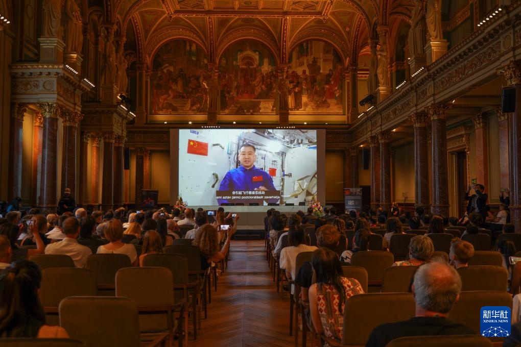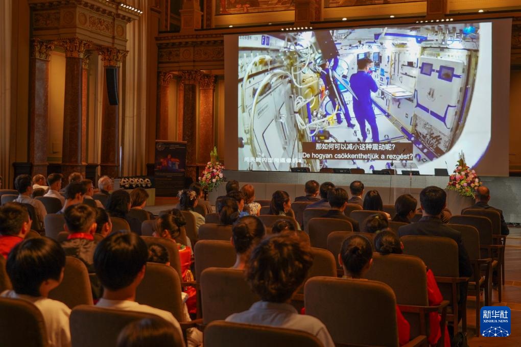 由中国载人航天工程办公室、中国驻匈牙利大使馆和匈牙利科学院共同举办的大型天地对话科普活动“天宫课堂”6日在匈牙利首都布达佩斯举行,中匈双方代表近300人参加。