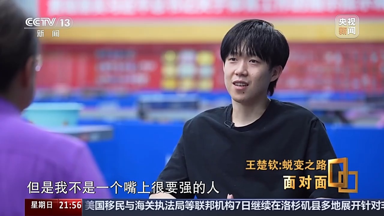 王楚钦:那个比赛赢完了以后,渐渐地就开始能以一个很正常、很积极向上的一个角度去思考了。你不能只是去考虑外在的问题,我觉得一个人他不能只抱怨外在,而是要去寻找自己内在真正的原因。