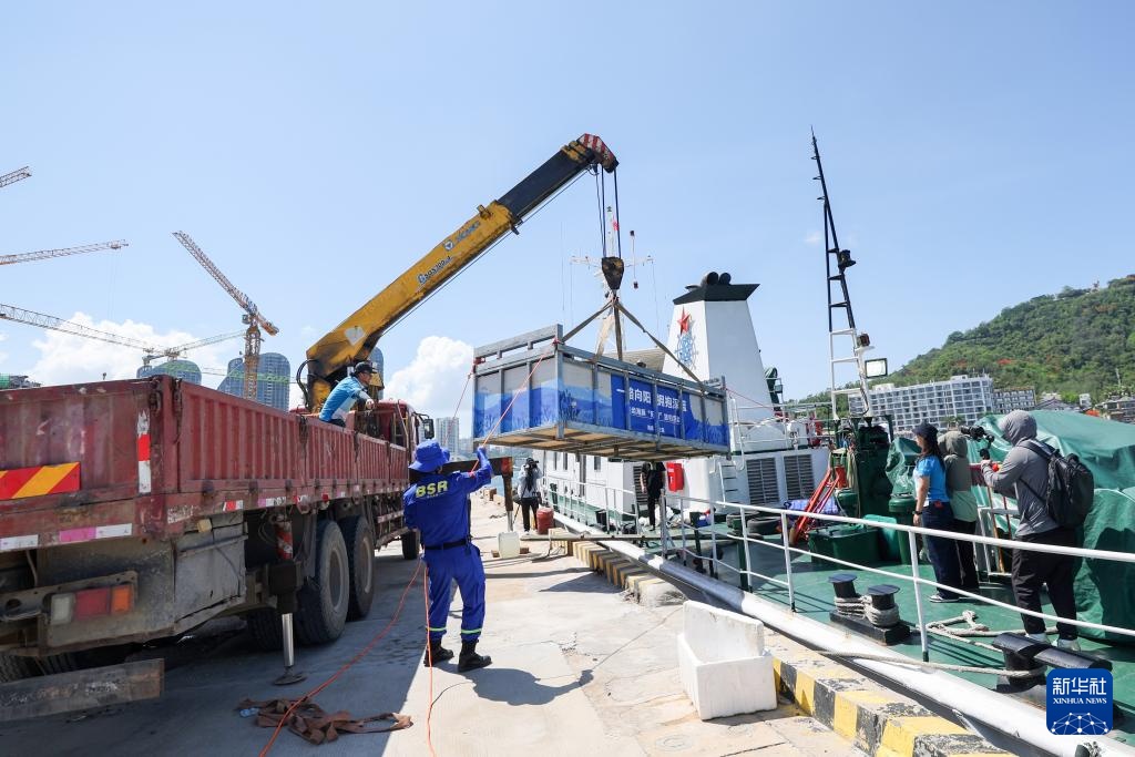 6月8日,糙齿海豚“阳阳”在船上等待被放归。新华社记者 张丽芸 摄