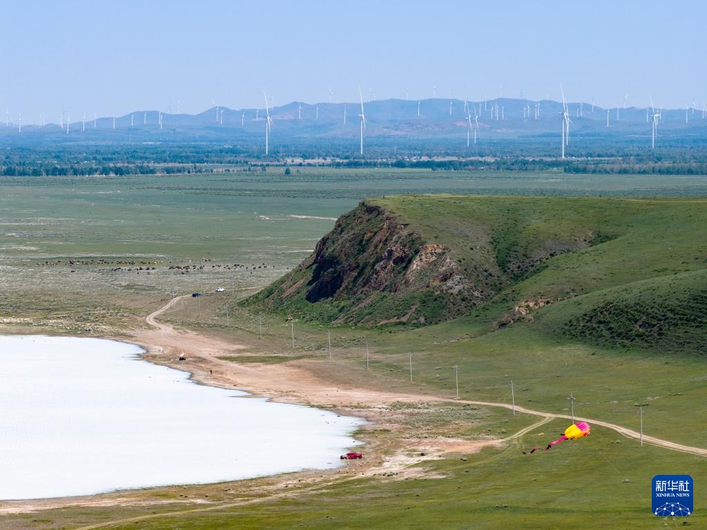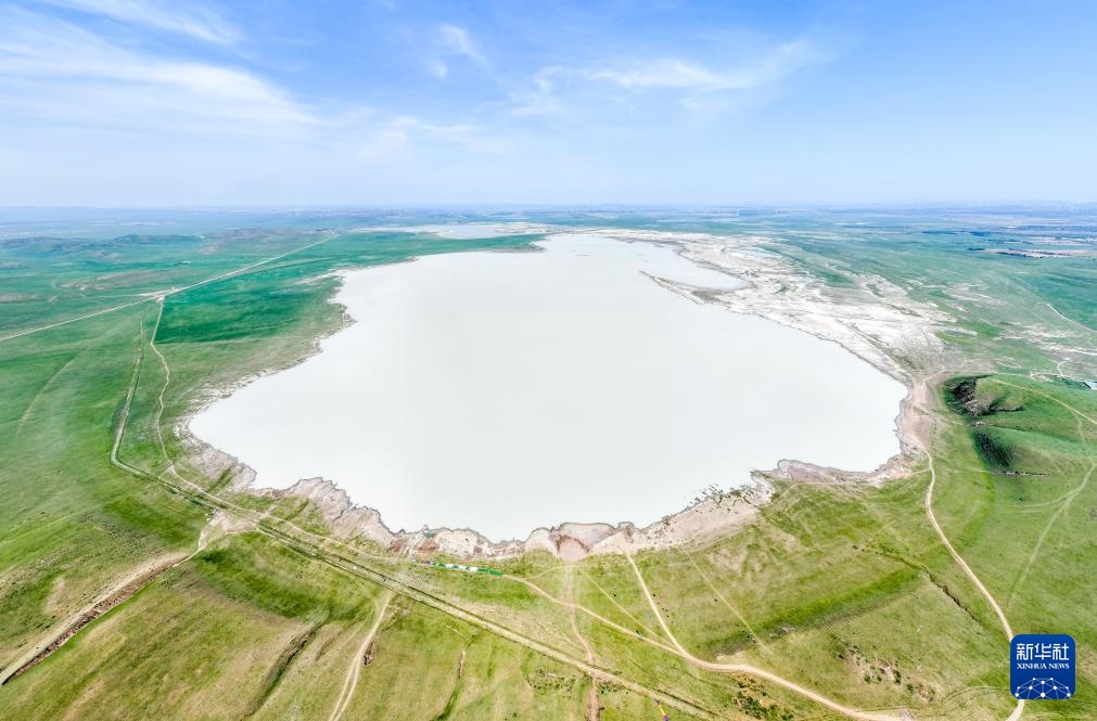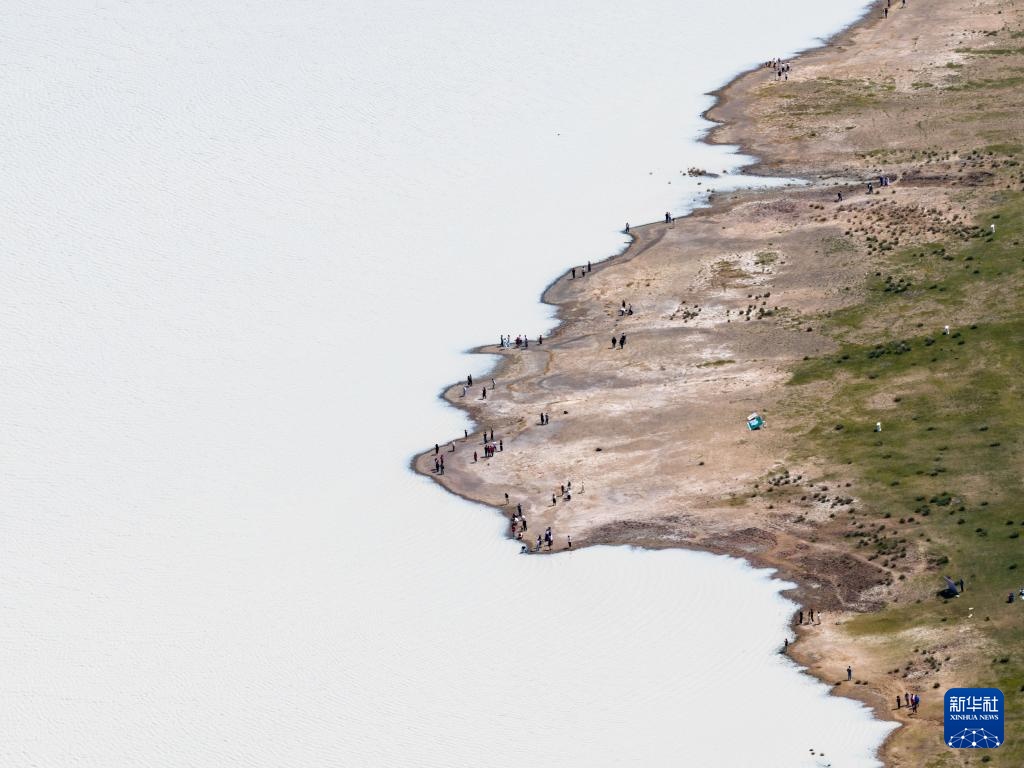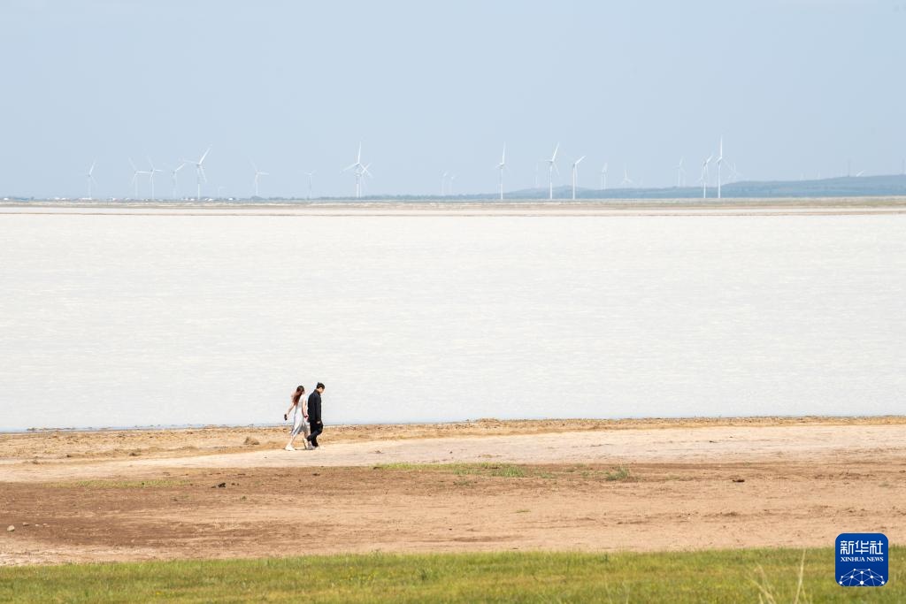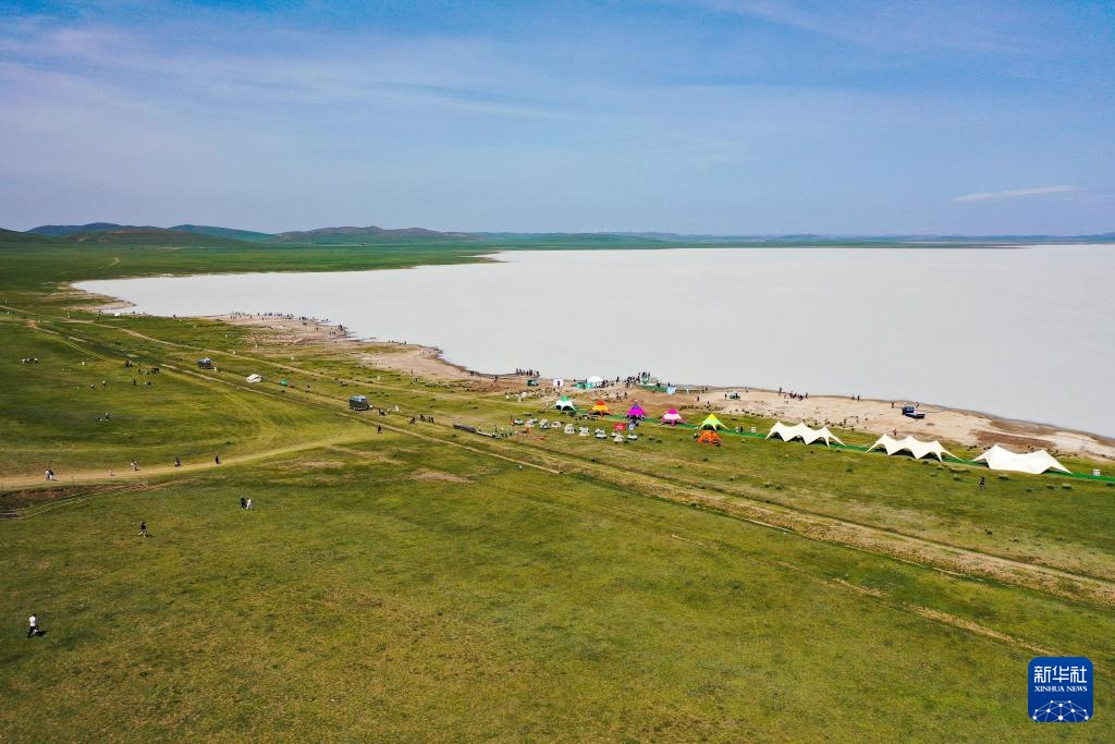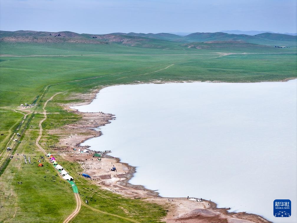 夏日,位于内蒙古锡林郭勒盟太仆寺旗的白音查干湖景色独特,吸引游客前来观赏游玩。白音查干湖因碳酸钙等矿物颗粒悬浮,湖水呈现出白色,被称为“牛奶湖”。