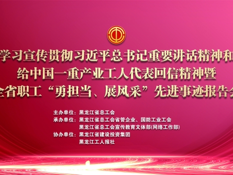 直播回顾|学习宣传贯彻习近平总书记重要讲话精神和给中国一重产业工人代表回信精神 暨黑龙江省职工“勇担当、展风采”先进事迹报告会 为深入学习宣传贯彻习近平总书记在庆祝中华全国总工会成立100周年暨全国劳动模范和先进工作者表彰大会上的重要讲话精神和给中国一重产业工人代表回信精神,充分发挥劳模工匠和各行业先进职工的示范引领作用,大力弘扬劳模精神、劳动精神、工匠精神,团结引领龙江广大职工群众牢记嘱托,奋力谱写中国式现代化龙江新篇章,黑龙江省总工会于6月13日举办“学习宣传贯彻习近平总书记重要讲话精神和给中国一重产业工人代表回信精神暨黑龙江省职工‘勇担当、展风采’先进事迹报告会”。中工网首页、微博、视频号同步播出。