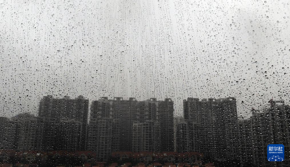 6月14日透过玻璃拍摄的广西北海市雨中景象。新华社记者 张爱林 摄
