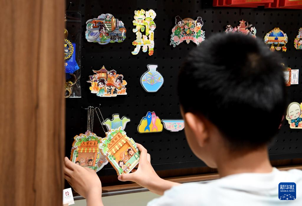 6月14日,游客在大河村遗址博物馆新馆文创区选购产品。新华社记者 郝源 摄