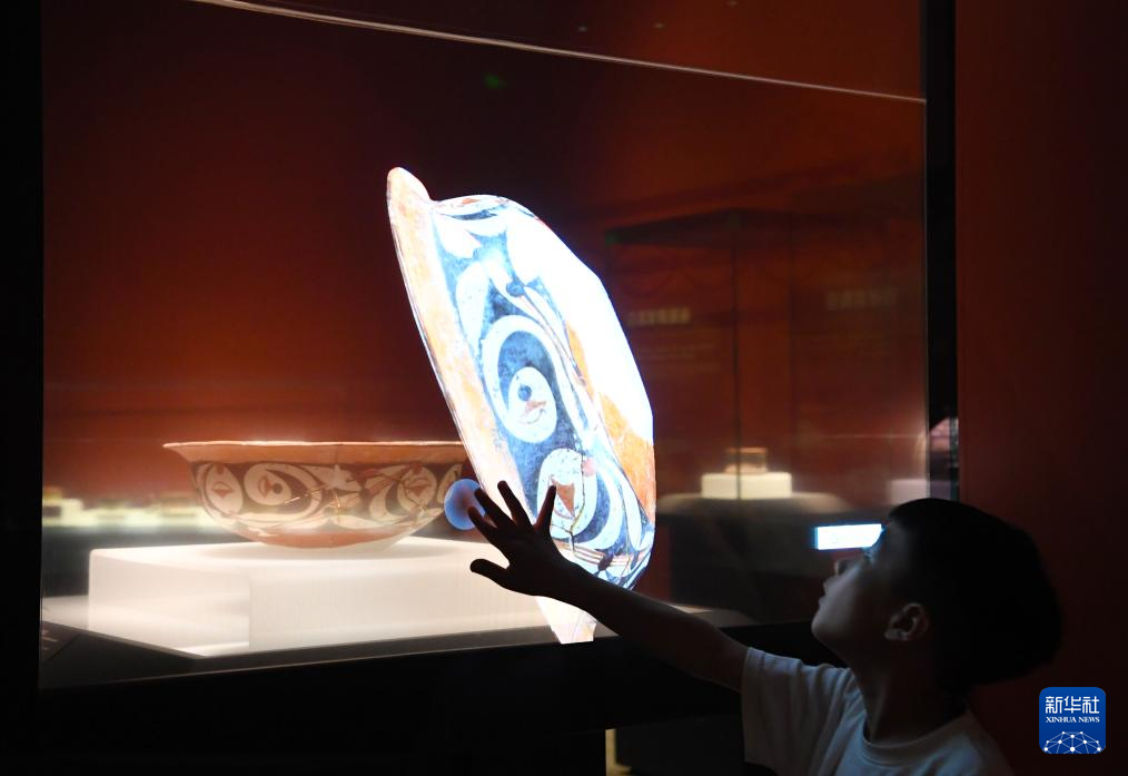 6月14日,在大河村遗址博物馆新馆,参观者通过数字技术与文物互动。新华社记者 郝源 摄