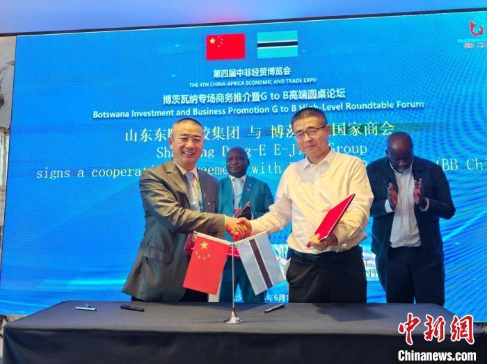 当日,多家中企与博茨瓦纳国家商会签署合作协议,携手进行新能源开发、农业技术合作、商贸对接。