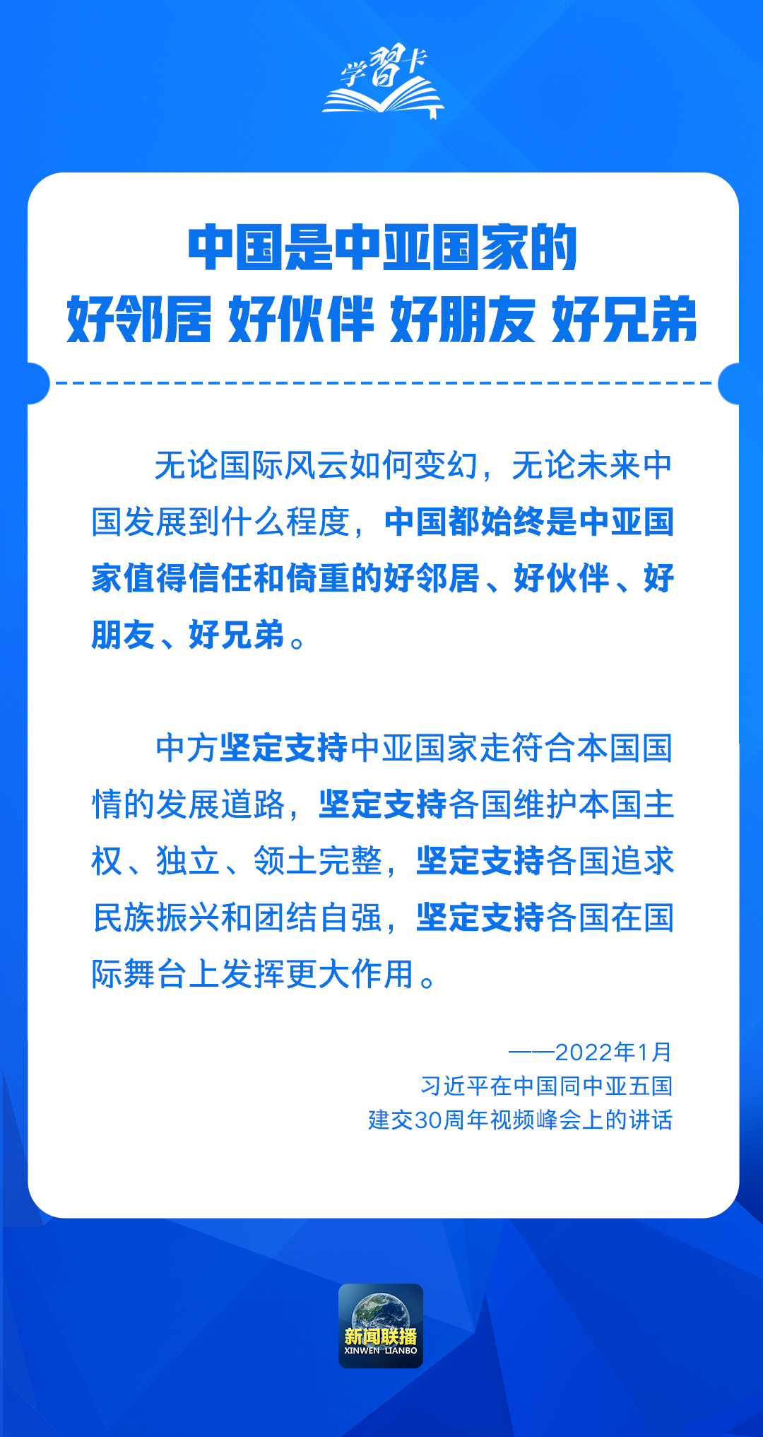 中亚是亚欧大陆的中心,处在联通东西、贯穿南北的十字路口。习近平主席强调,深化中国—中亚合作,是我们这代领导人着眼未来作出的战略抉择,顺应世界大势,符合人民期盼。