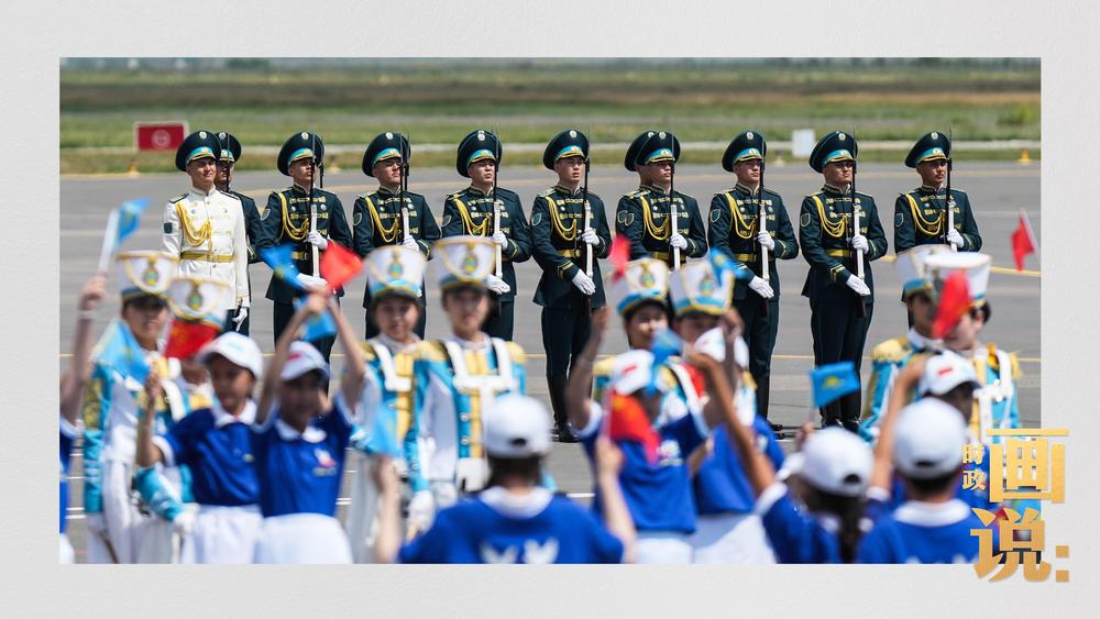 当地时间6月16日中午,国家主席习近平乘专机抵达阿斯塔纳,出席第二届中国—中亚峰会。