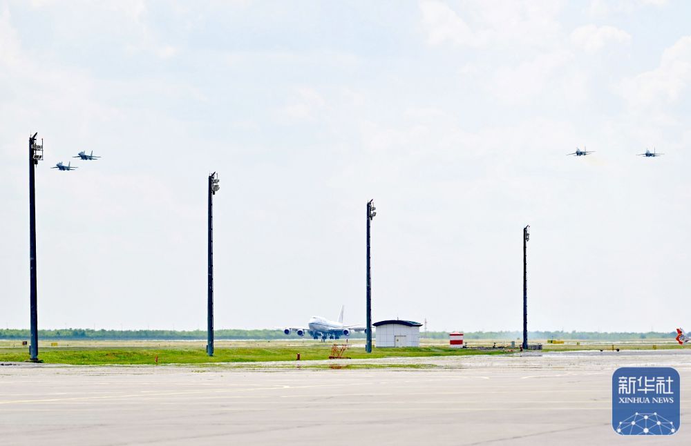 习近平乘坐的专机进入哈萨克斯坦领空后,哈萨克斯坦空军战机升空护航。