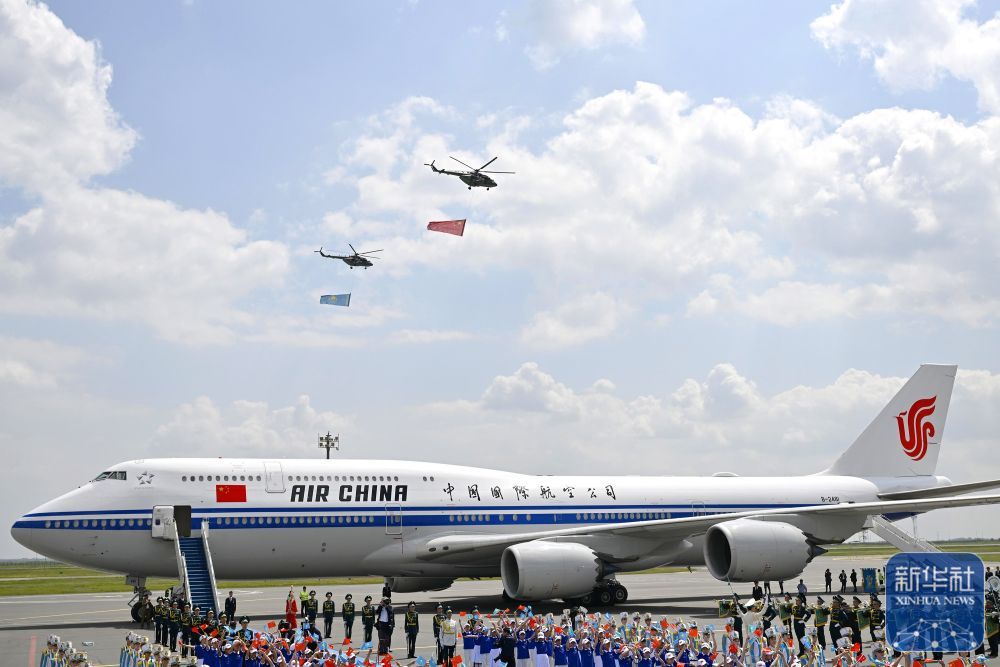 当地时间6月16日中午,国家主席习近平乘专机抵达阿斯塔纳,应哈萨克斯坦共和国总统托卡耶夫邀请,出席第二届中国—中亚峰会。