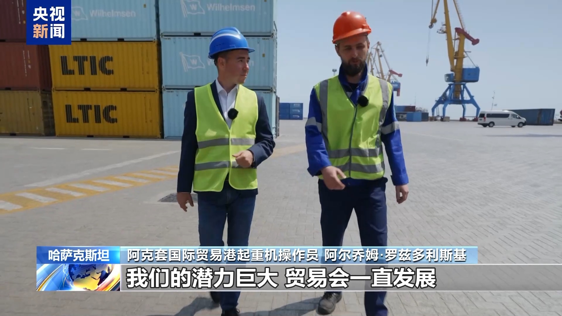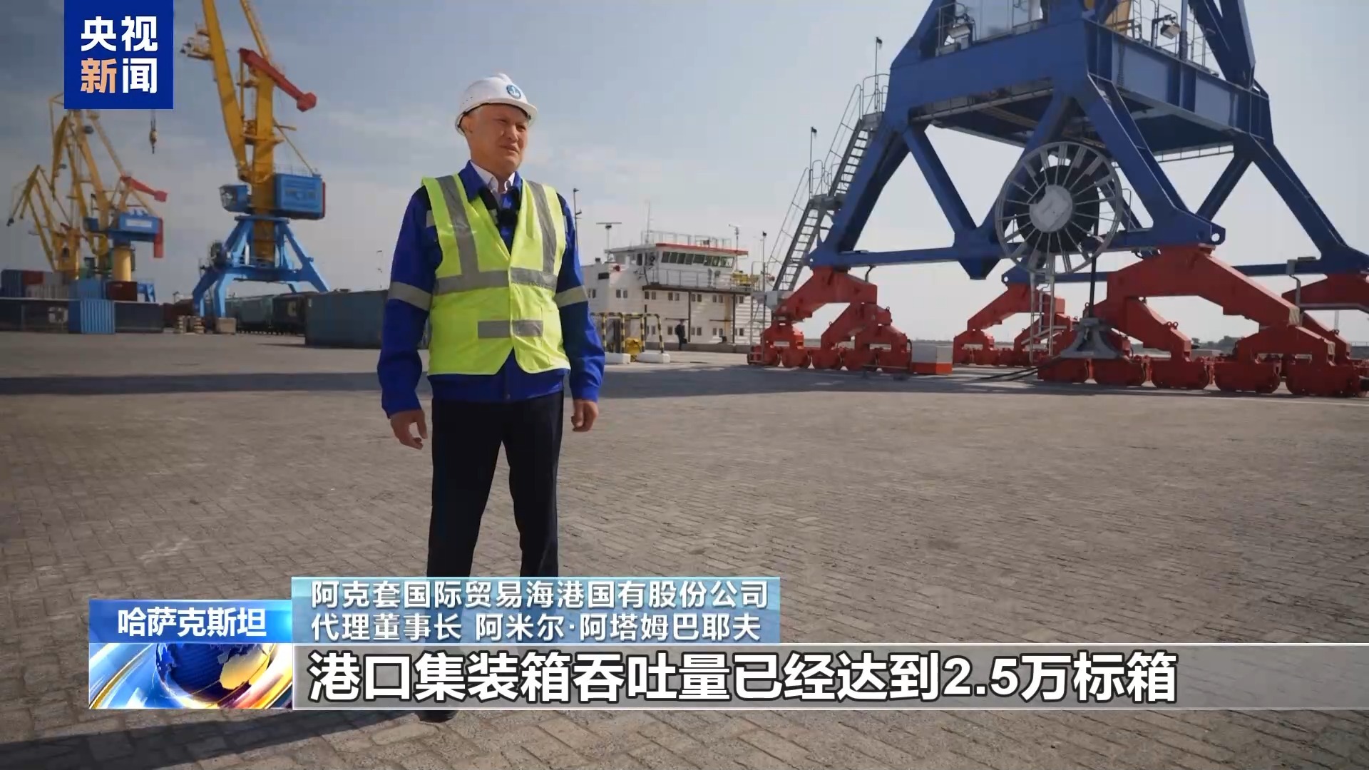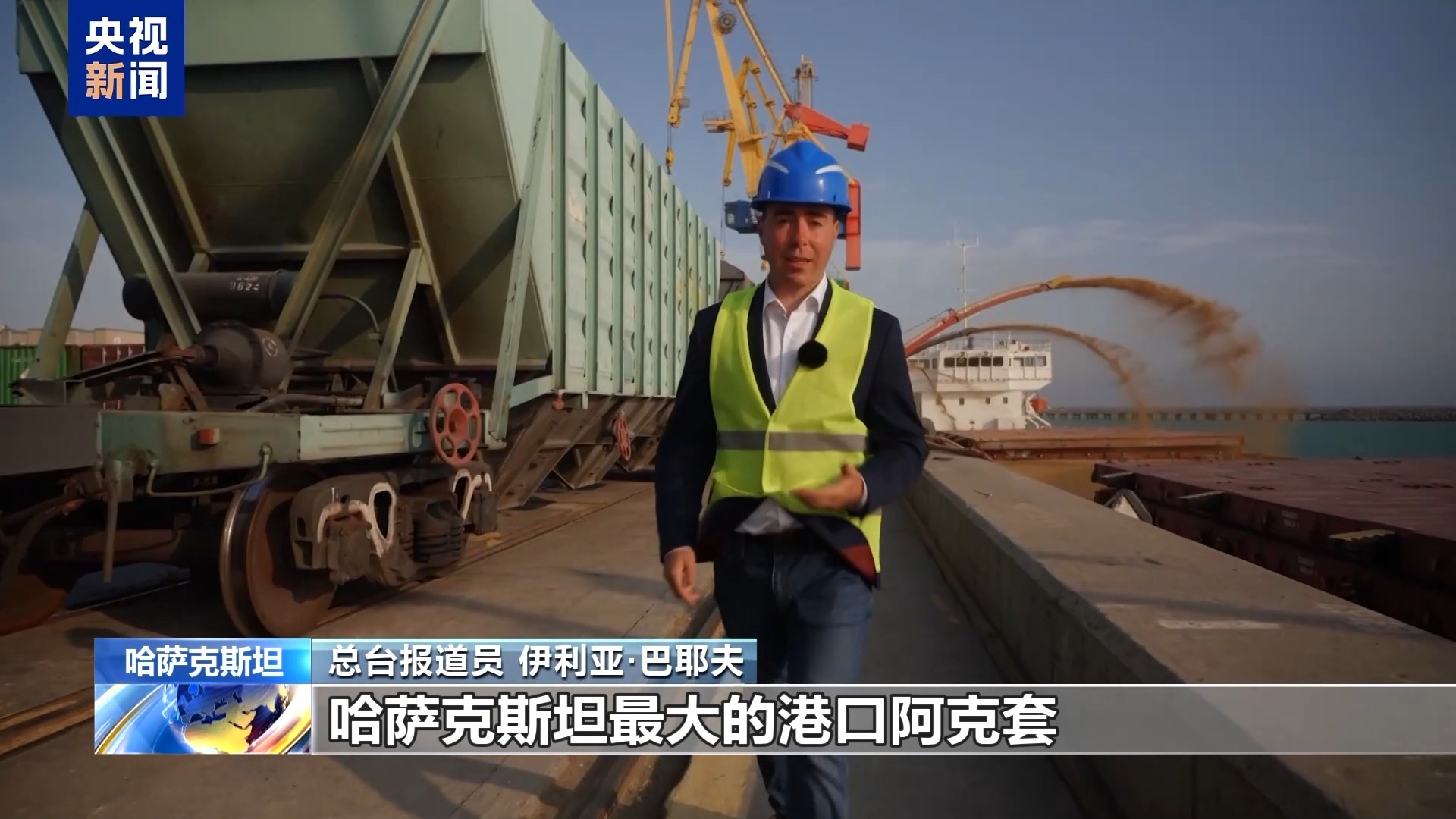 总台报道员 伊利亚·巴耶夫:里海现代化的运输能力在这里尽收眼底,新的运输线路孕育着新的机遇,哈萨克斯坦最大的港口阿克套如今已经成为“一带一路”上重要的一环。