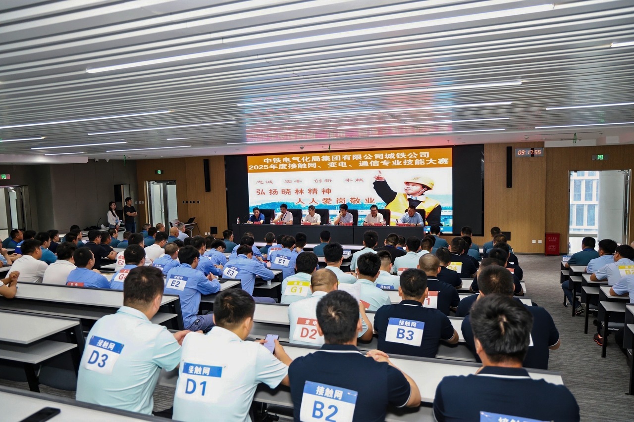 近日,中铁电气化局集团有限公司城铁公司工会举行2025年度接触网、变电、通信专业技能大赛,来自一线共96名技术能手齐聚一堂,同台竞技,一展风采。经过4天的激烈角逐,3个专业各有3个优秀团体和10名优秀个人脱颖而出。