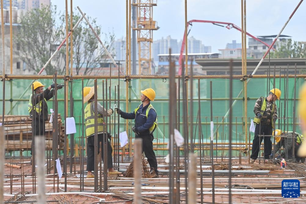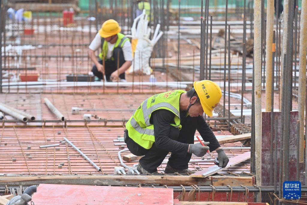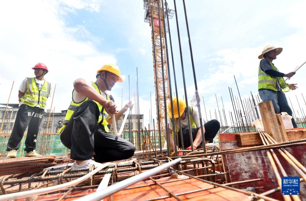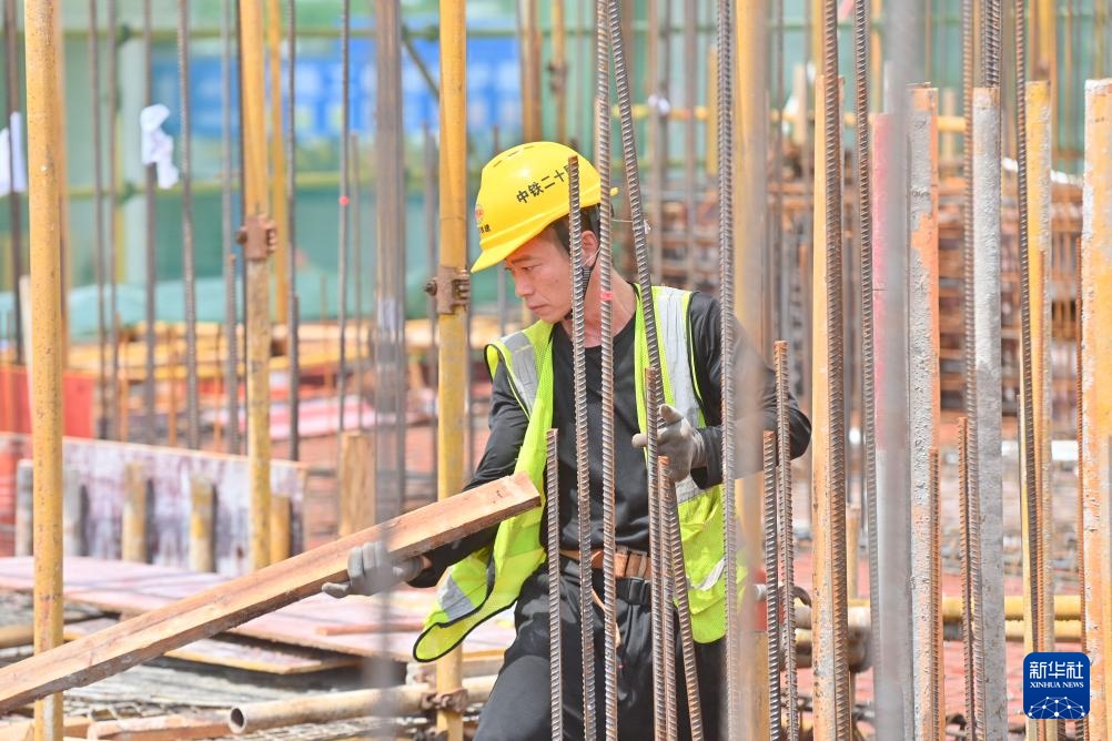 6月16日,中铁二十局工人在南宁市鸡村城中村改造项目建设现场施工作业。新华社记者 黄孝邦 摄