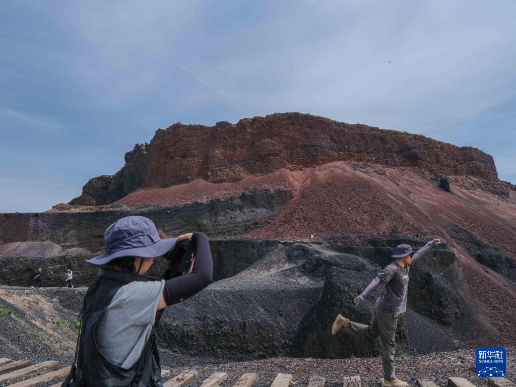 6月17日,游客在乌兰哈达火山地质公园6号火山留影。新华社记者 马金瑞 摄