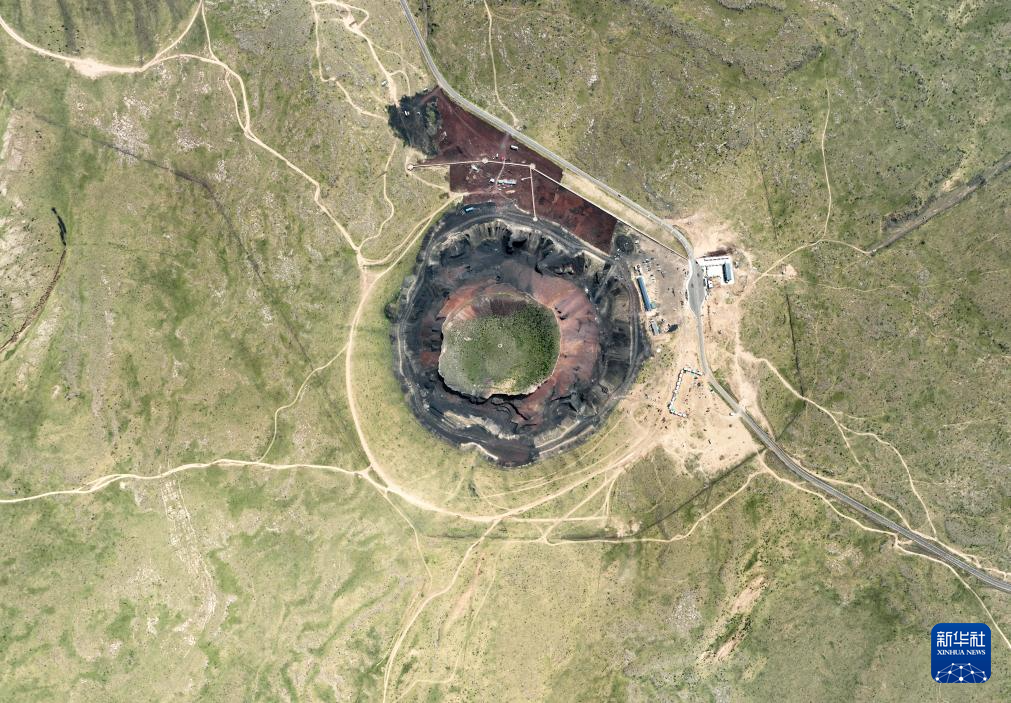 6月17日拍摄的内蒙古乌兰察布市察哈尔右翼后旗内蒙古乌兰哈达火山地质公园6号火山(无人机照片)。新华社记者 贝赫 摄