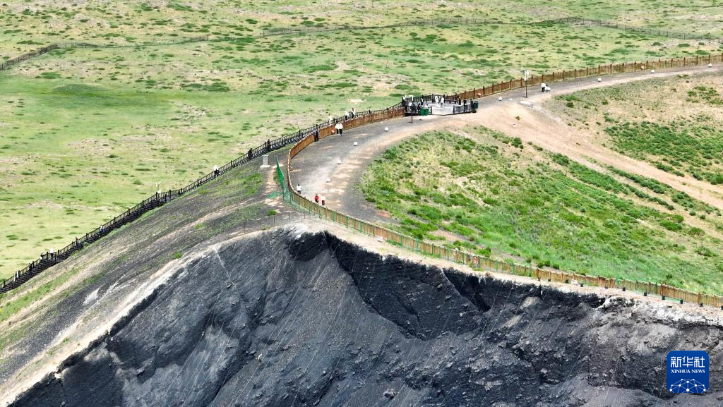 6月17日,游客在乌兰哈达火山地质公园3号火山观景台游览(无人机照片)。新华社记者 马金瑞 摄