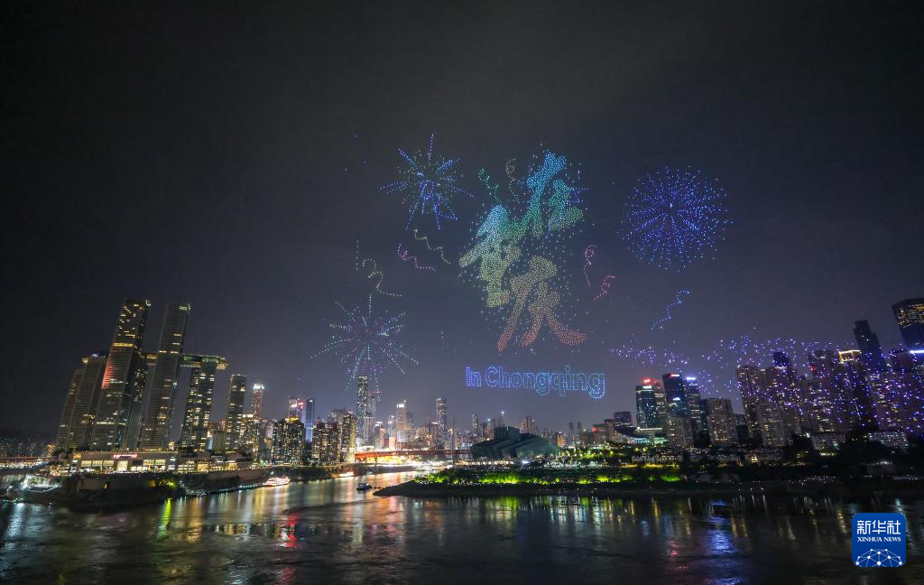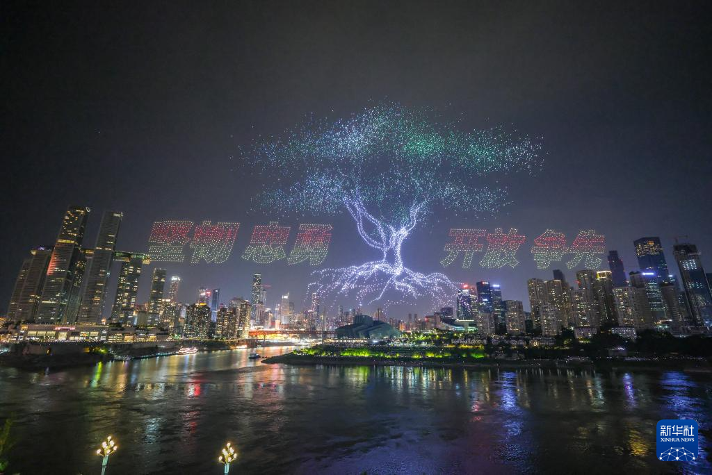 6月17日晚,重庆举行超大规模无人机灯光秀表演,由11787架无人机组成的双编队飞行从重庆市南岸区弹子石广场起飞,创造了“最多无人机组成的空中图案”吉尼斯世界纪录。