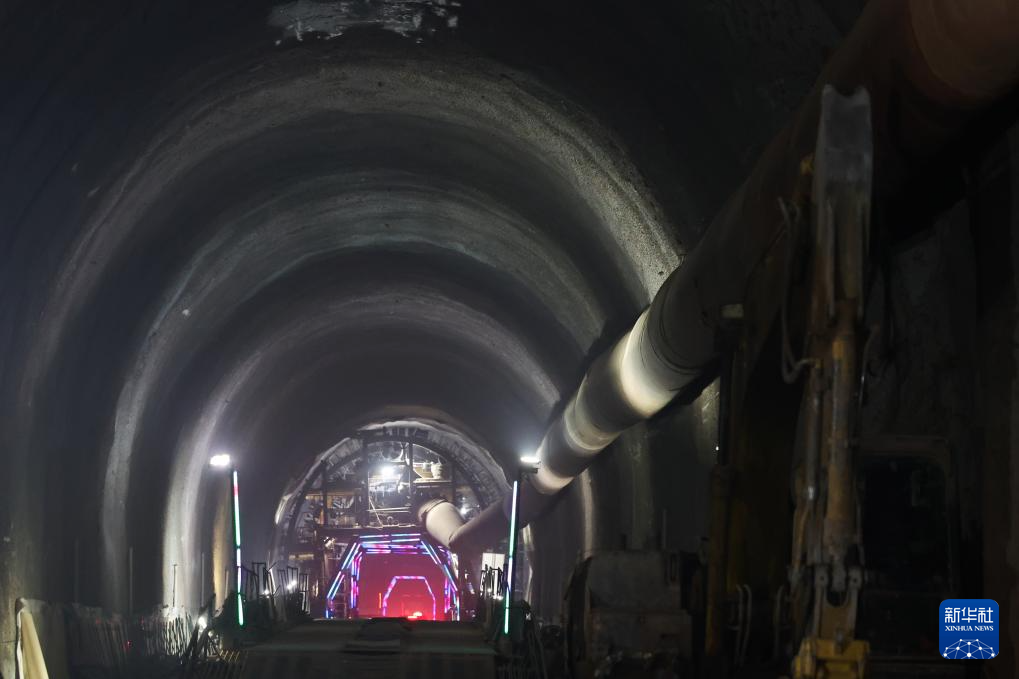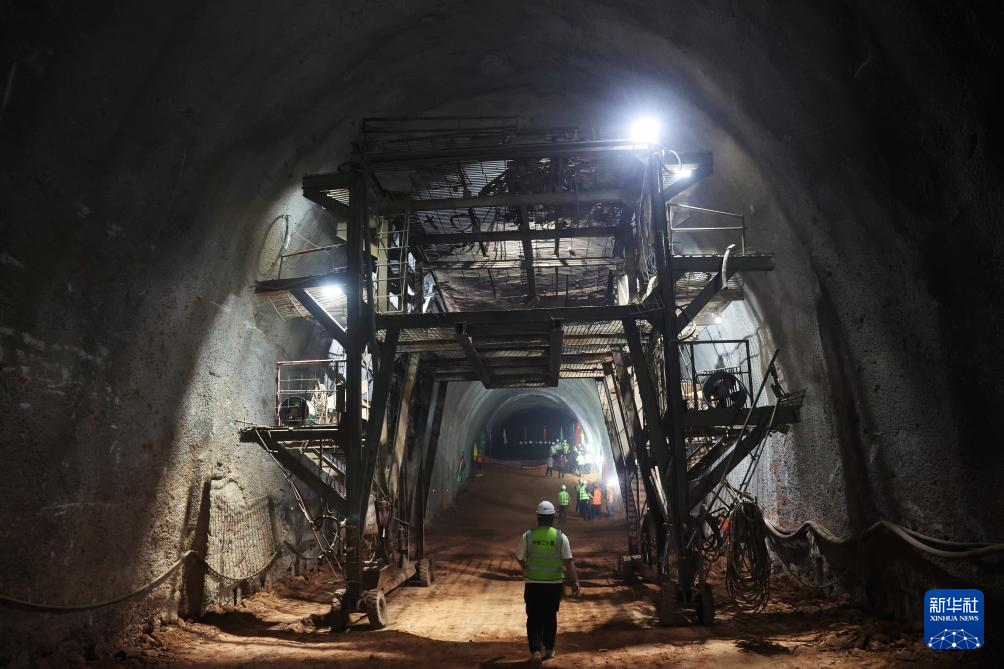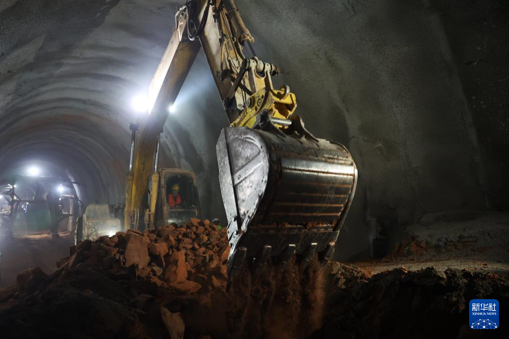 6月18日,中铁二十局的建设者在已经贯通的兰合铁路黄家岭隧道内施工。新华社记者 陈斌 摄
