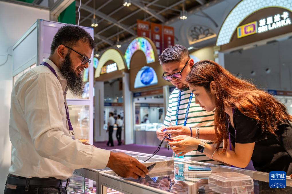 6月19日,观众在第9届中国—南亚博览会巴基斯坦展区选购特色商品。新华社记者 胡超 摄