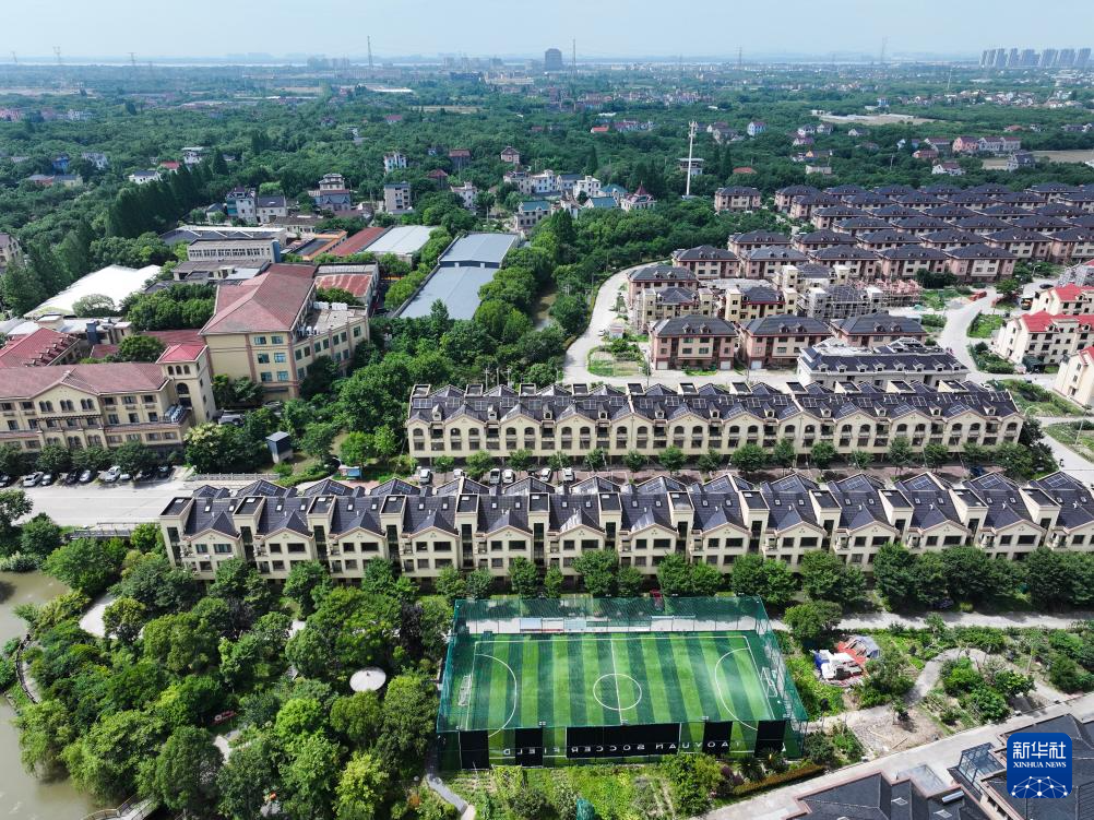 这是6月19日拍摄的海宁市盐官镇桃园村的农民新村(无人机照片)。新华社记者 徐昱 摄