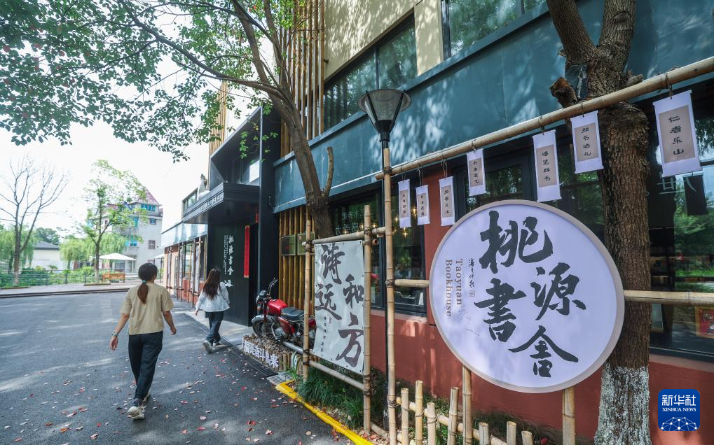 这是6月19日在海宁市盐官镇桃园村拍摄的桃源书舍。这座由闲置厂房改造而来的乡村书店已成为村民的文化驿站和游客的旅游打卡地标。新华社记者 徐昱 摄