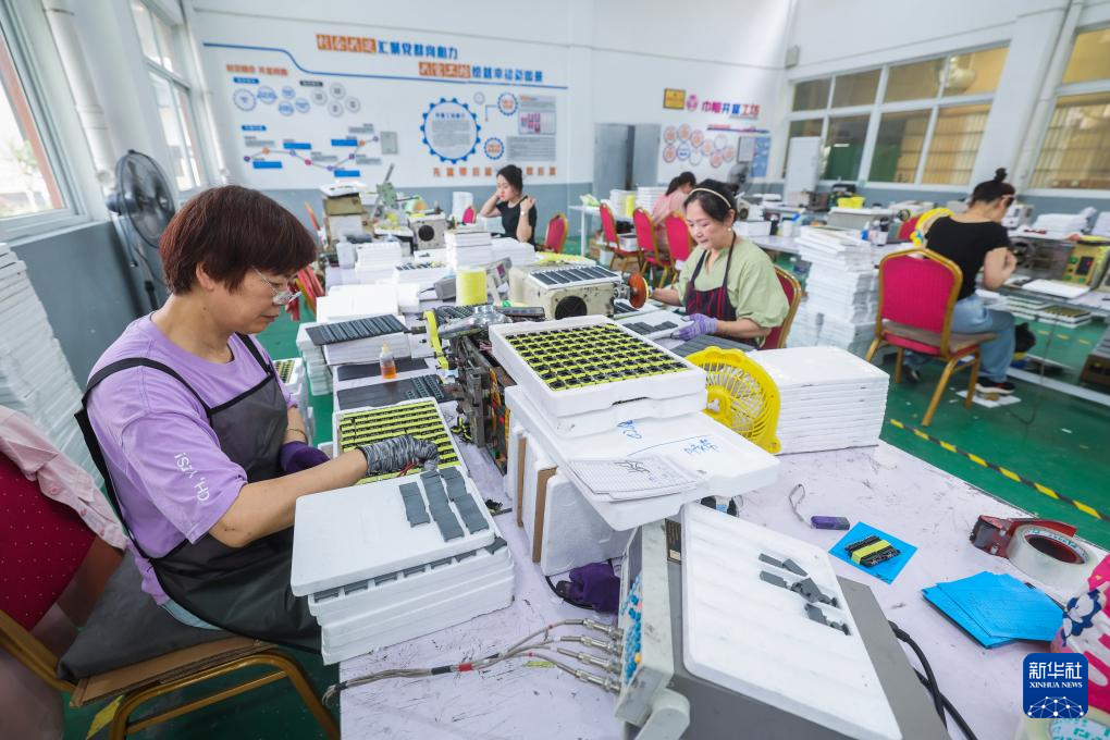 6月19日,村民在海宁市盐官镇桃园村红“芯”共富工坊内工作。该共富工坊针对有灵活就业需求的低收入村民,采用“灵活就业+固定用工”弹性用工方式。新华社记者 徐昱 摄
