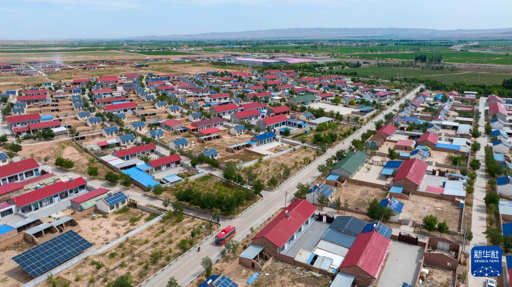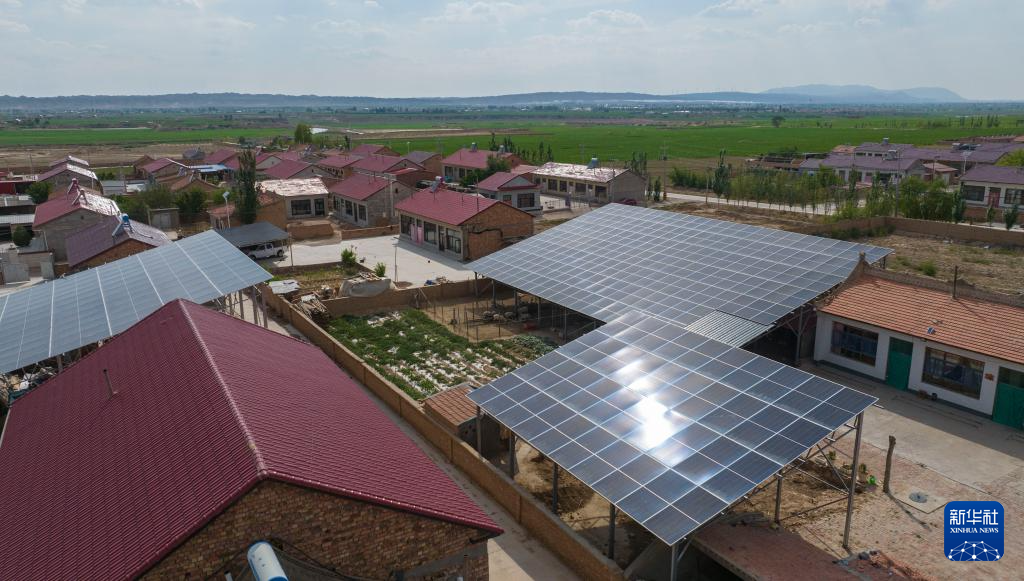 这是6月20日拍摄的宁夏同心县河西镇同德村,该村建设完成的分布式光伏已全部并网发电(无人机照片)。新华社记者 杨植森 摄