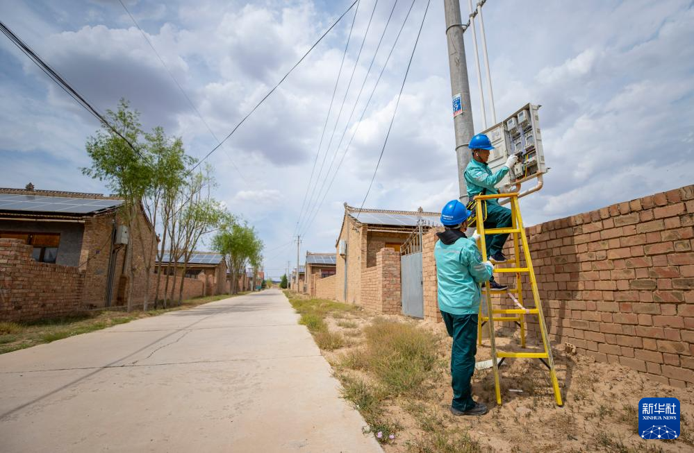6月20日,宁夏同心县河西镇菊花台村,当地供电部门工作人员对农户的光伏并网低压计量装置进行检查。新华社记者 杨植森 摄