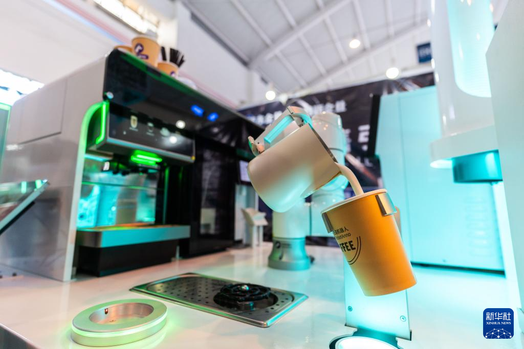 6月22日,拉花咖啡机器人在第9届南博会上制作咖啡。新华社记者 高咏薇 摄