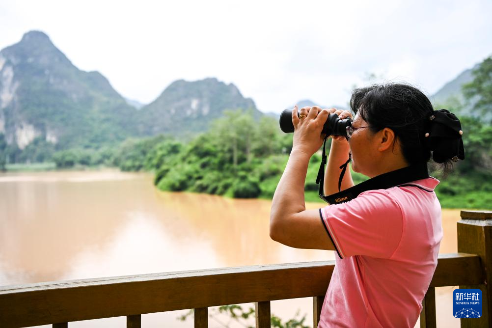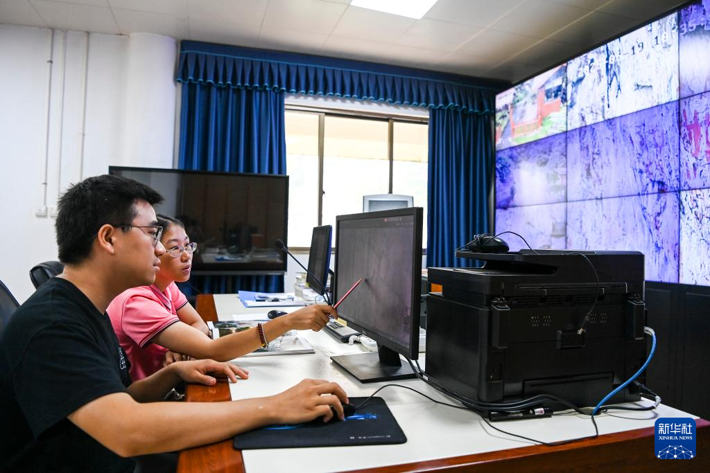 6月19日,在位于广西宁明县的花山岩画监测站,工作人员通过监控设备查看岩画情况。新华社记者 曹祎铭 摄