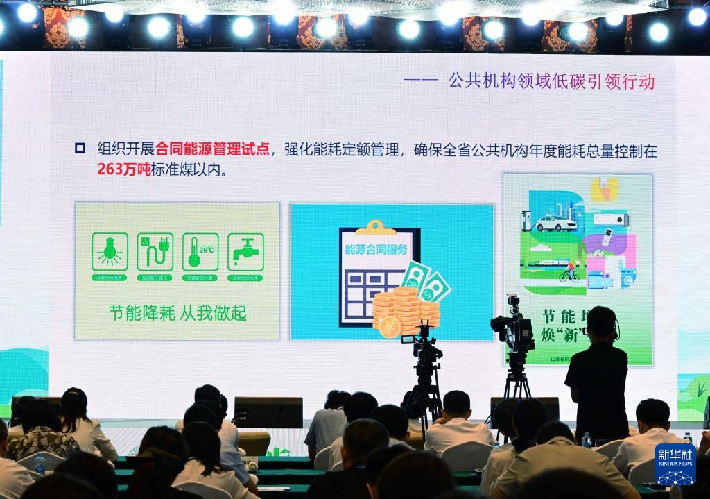 6月23日在山东青岛拍摄的2025年全国节能宣传周启动仪式会场。新华社记者 李紫恒 摄
