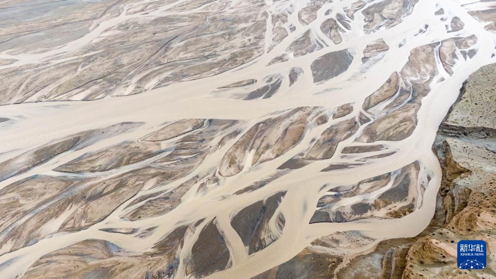 这是6月23日拍摄的野牛沟辫状河流(无人机照片)。新华社记者 王艳 摄