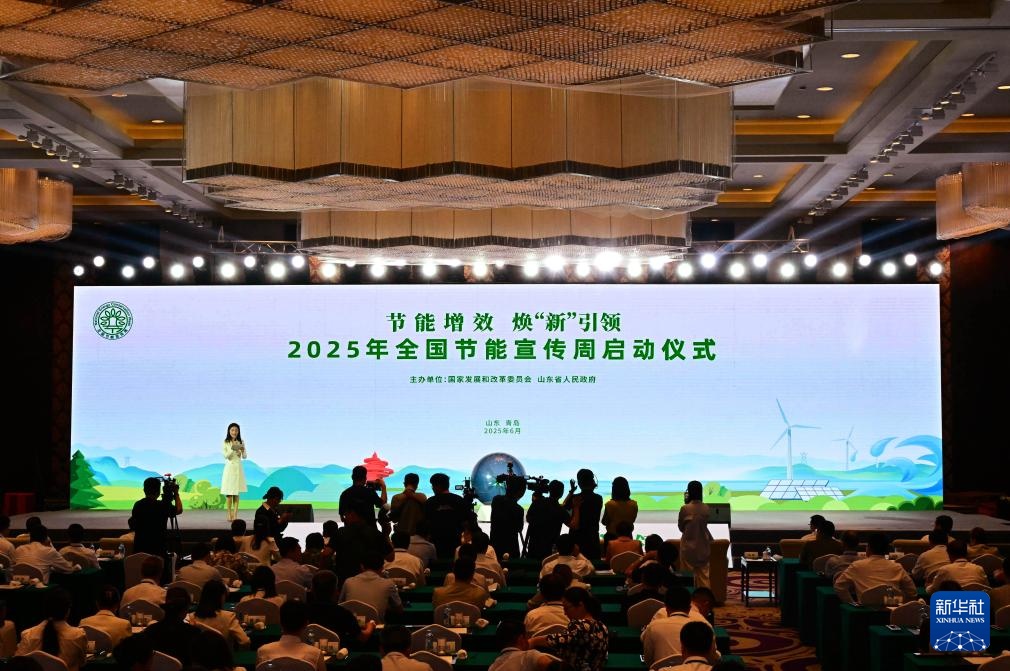 6月23日在山东青岛拍摄的2025年全国节能宣传周启动仪式会场。新华社记者 李紫恒 摄