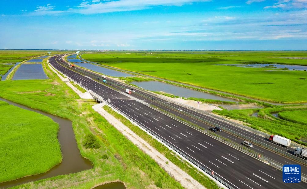 6月23日拍摄的已经完工的京哈高速盘锦段改扩建工程(无人机照片)。新华社记者 杨青 摄