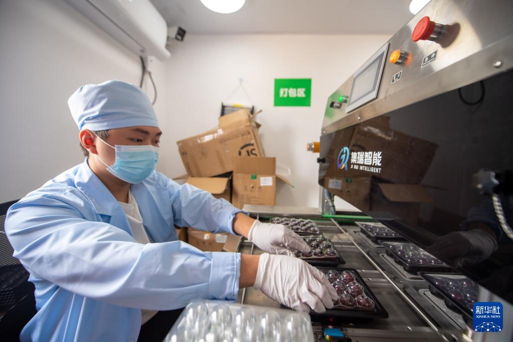 6月22日,在浙江省文成县环飞云湖杨梅基地,工作人员在打包东魁杨梅。新华社记者 江汉 摄