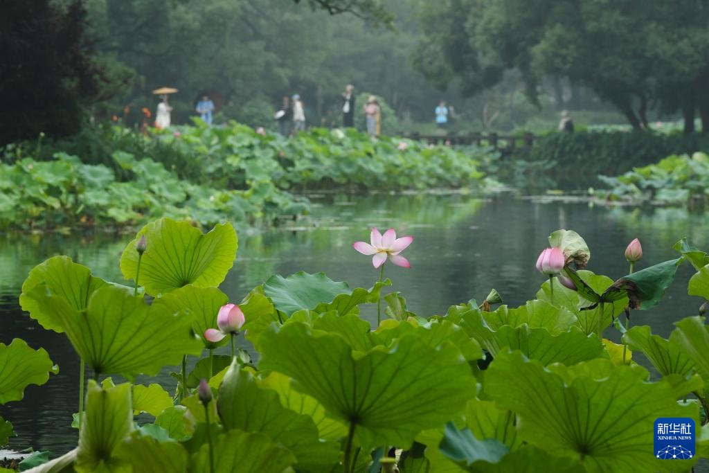 6月24日,人们在曲院风荷景区赏荷。新华社记者 翁忻旸 摄
