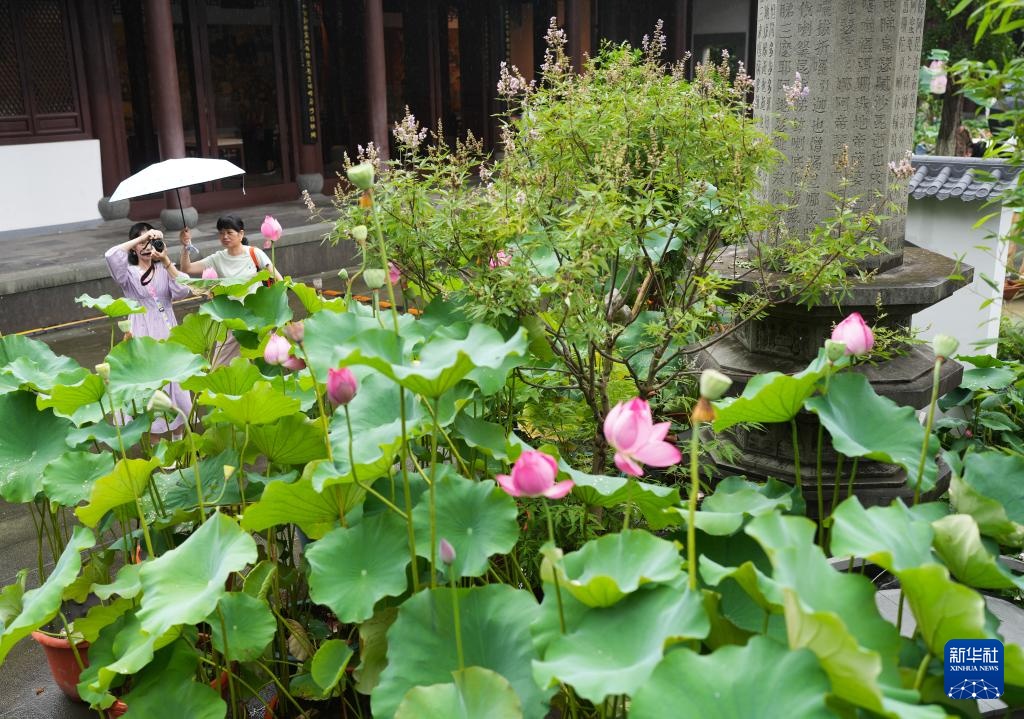6月24日,人们在钱王祠景区参观西湖莲荷展。新华社记者 翁忻旸 摄