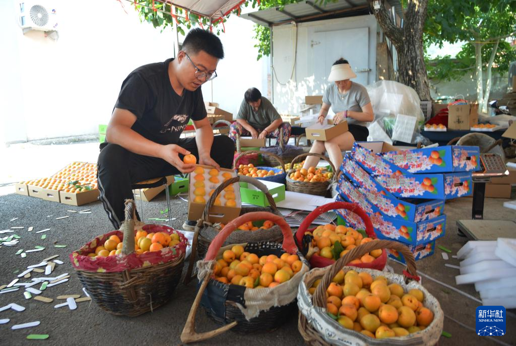 6月24日,在北京市平谷区南独乐河镇北寨村,果农将分拣好的红杏装箱。新华社记者 任超 摄