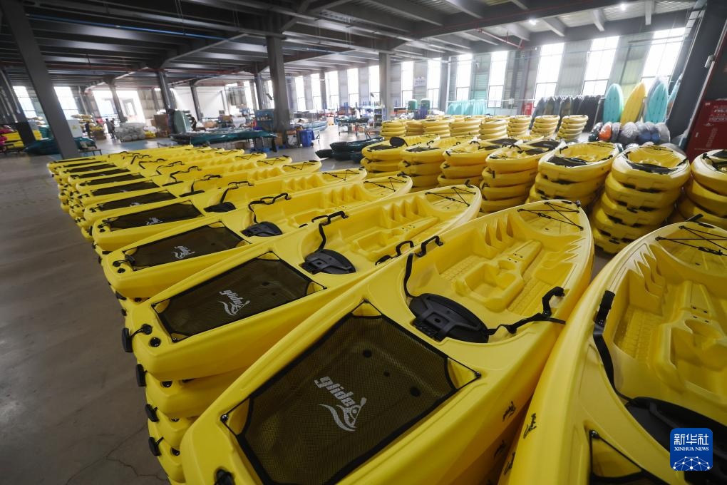 6月25日在位于慈溪的浙江酷尔智能科技有限公司的车间内拍摄的一批出口的皮划艇产品。新华社记者 徐昱 摄