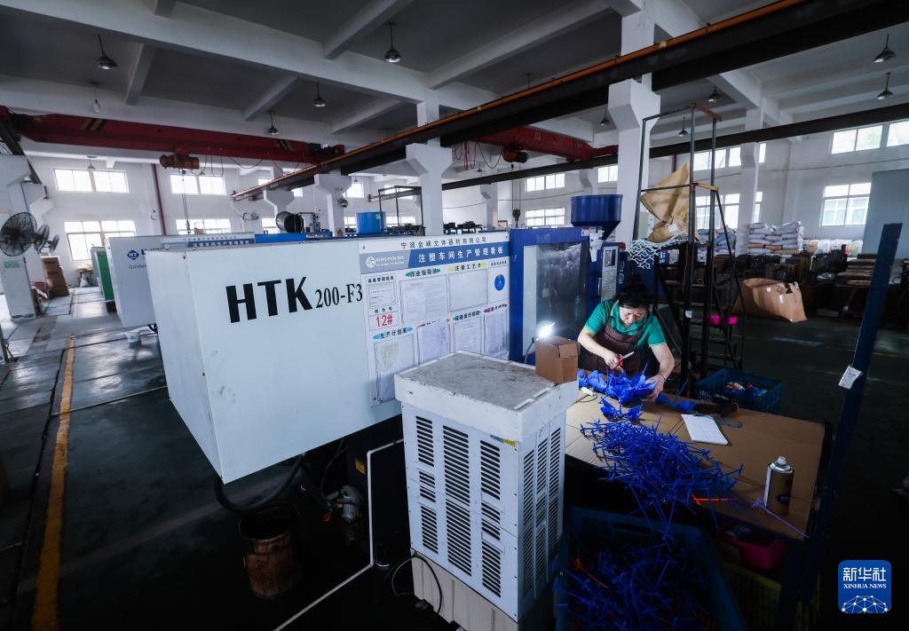 6月25日,在位于慈溪市的浙江酷尔智能科技有限公司的车间内,工人在加工出口的皮划艇。新华社记者 徐昱 摄