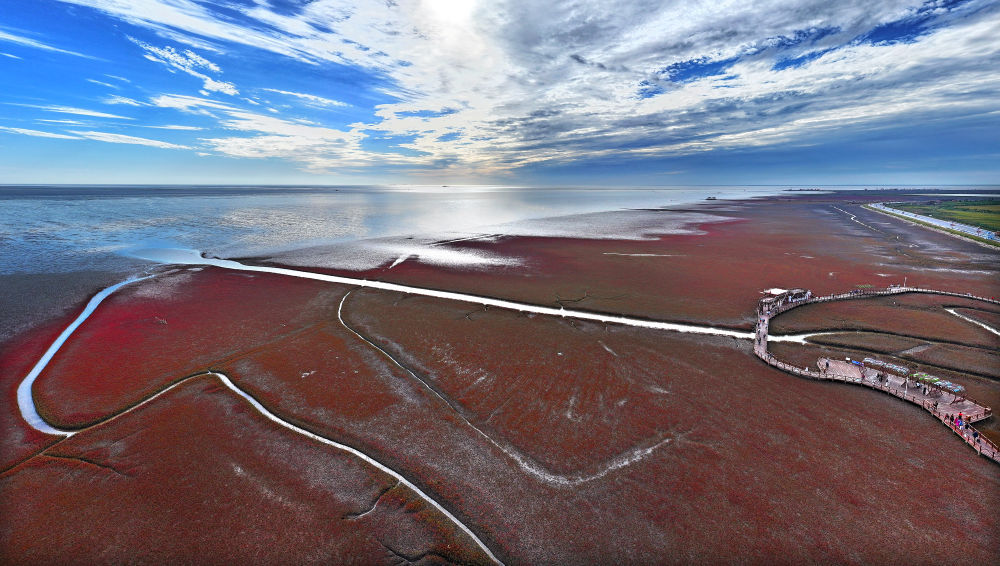 在辽宁,近海生态“含绿量”持续转化为“含金量”:大连长海县国家级海洋牧场中,“海底造林”模式让生态养护与海产丰收双赢,2024年,长海县水产品产量73.2万吨,渔业产值117.1亿元;盘锦红海滩国家风景廊道带动周边乡村旅游收入持续增长;锦州探索盐沼植被碳交易;营口仙人岛修复潟湖沙坝提升防灾能力20%……