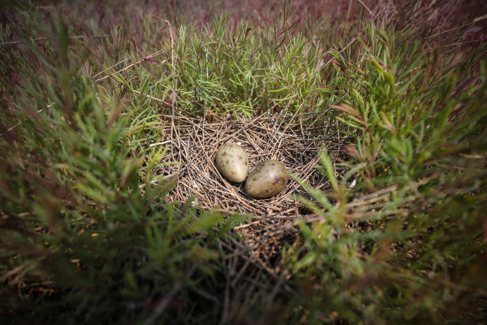 在辽河口国家级自然保护区南小河保护站附近的湿地,黑嘴鸥巢中有待孵化的蛋(2022年6月17日摄)。新华社记者 潘昱龙 摄