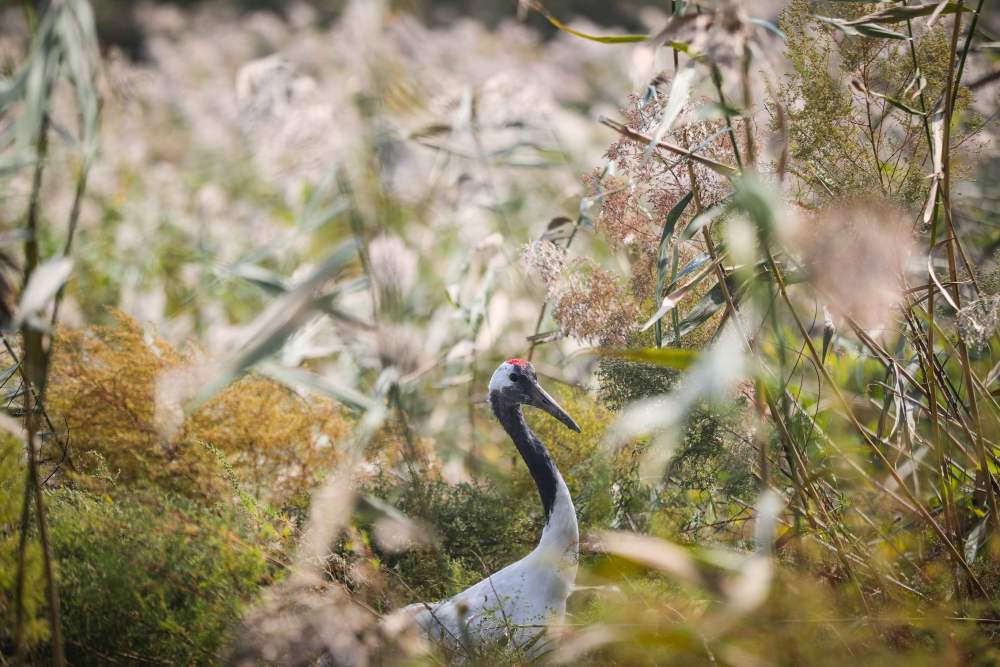锦州大凌河口,摄影爱好者余炼在修复后的盐沼地架起相机,高兴地说:“生态好了,丹顶鹤越来越多了!”