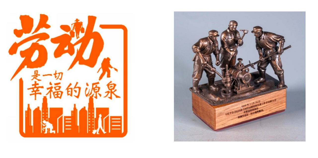边款:2020年11月24日,习近平总书记出席全国劳动模范和先进工作者表彰大会并发表重要讲话,强调劳动是一切幸福的源泉。