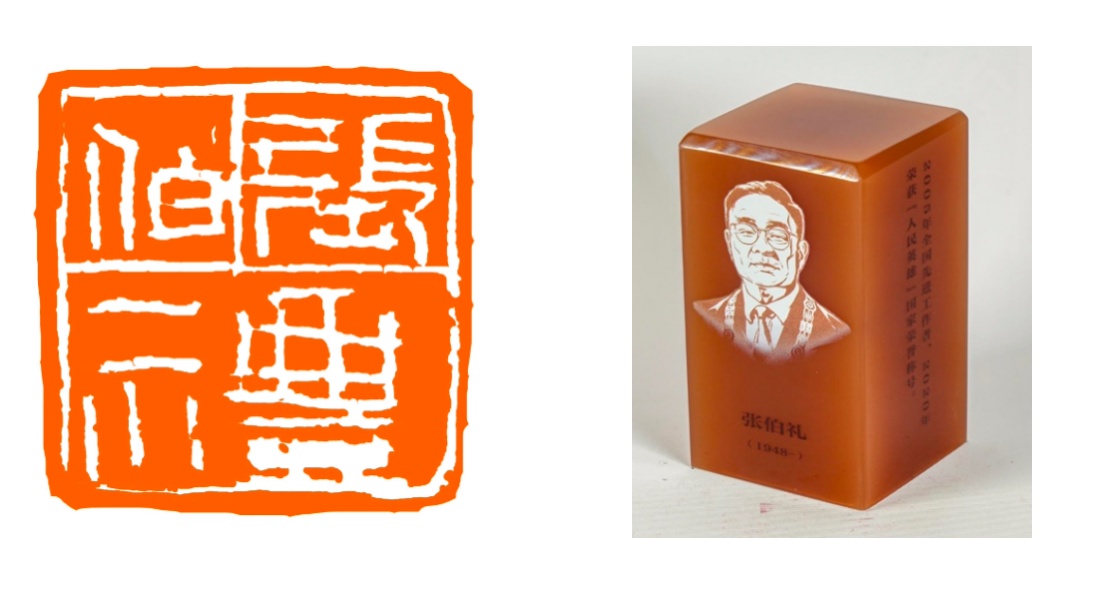 边款:张伯礼(1948-),2005年全国先进工作者,2020年荣获“人民英雄”国家荣誉称号。