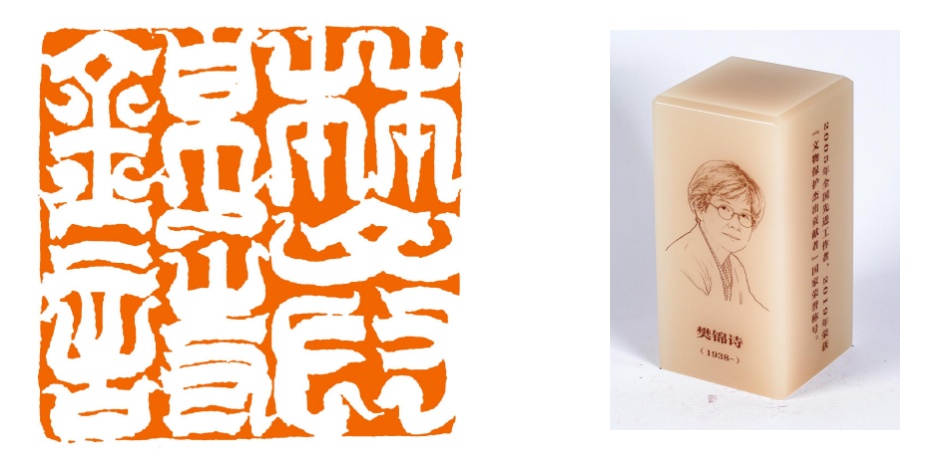 边款:樊锦诗(1938-),2005年全国先进工作者,2019年荣获“文物保护杰出贡献者”国家荣誉称号。