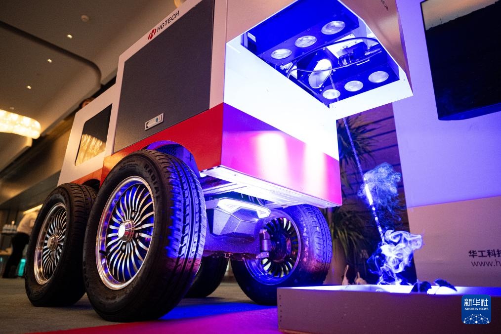 6月28日,全天时智能激光除草机器人在活动现场演示激光除草。新华社记者 肖艺九 摄